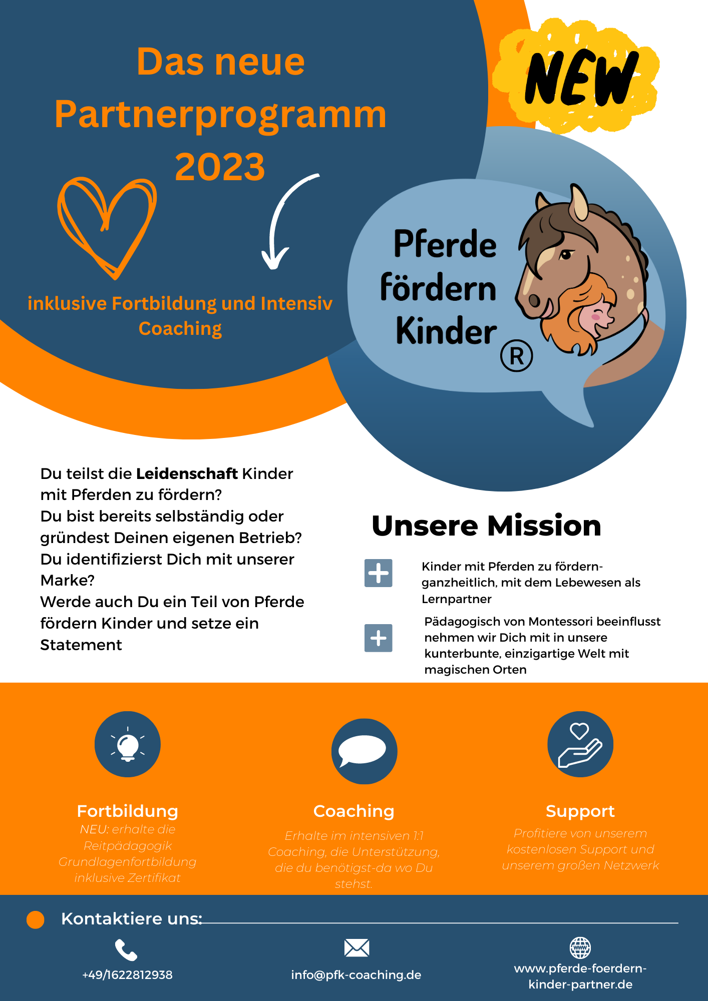 Werde auch Du ein Teil von Pferde fördern Kinder- der Marke basierend auf dem einzigartigen PfK Konzept